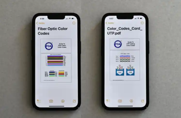Aquí están los enlaces para descargar tus propias guías de FOA para códigos de color de fibra óptica