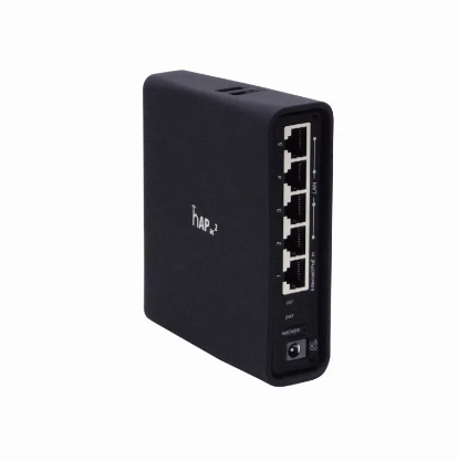 El Router RBD52G HAP-AC2 es un dispositivo de red dual-band que ofrece conectividad en las bandas de 2.4 GHz y 5 GHz, ideal para hogares y pequeñas oficinas. Equipado con 5 puertos Ethernet, este router permite una fácil administración de múltiples dispositivos con conexiones rápidas y estables. Además, ofrece soporte para tecnologías avanzadas como MikroTik RouterOS, proporcionando funciones de firewall, VPN y QoS. El HAP-AC2 es perfecto para entornos donde se requiere alta velocidad y fiabilidad en la conexión inalámbrica.